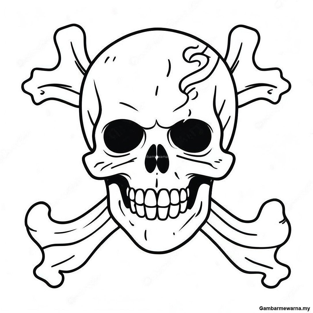 Halaman Mewarna Tengkorak Menyeramkan Dengan Tulang Bersilang