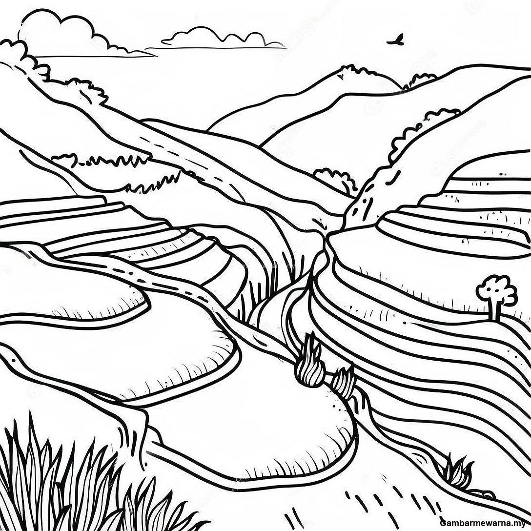 Halaman Mewarna Teres Padi Banaue Yang Ceria