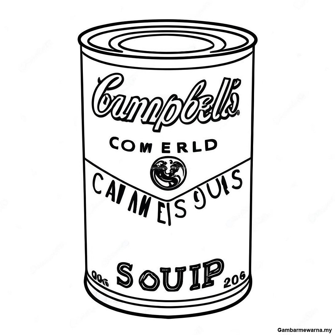 Halaman Mewarna Tin Sup Campbell Yang Terkenal