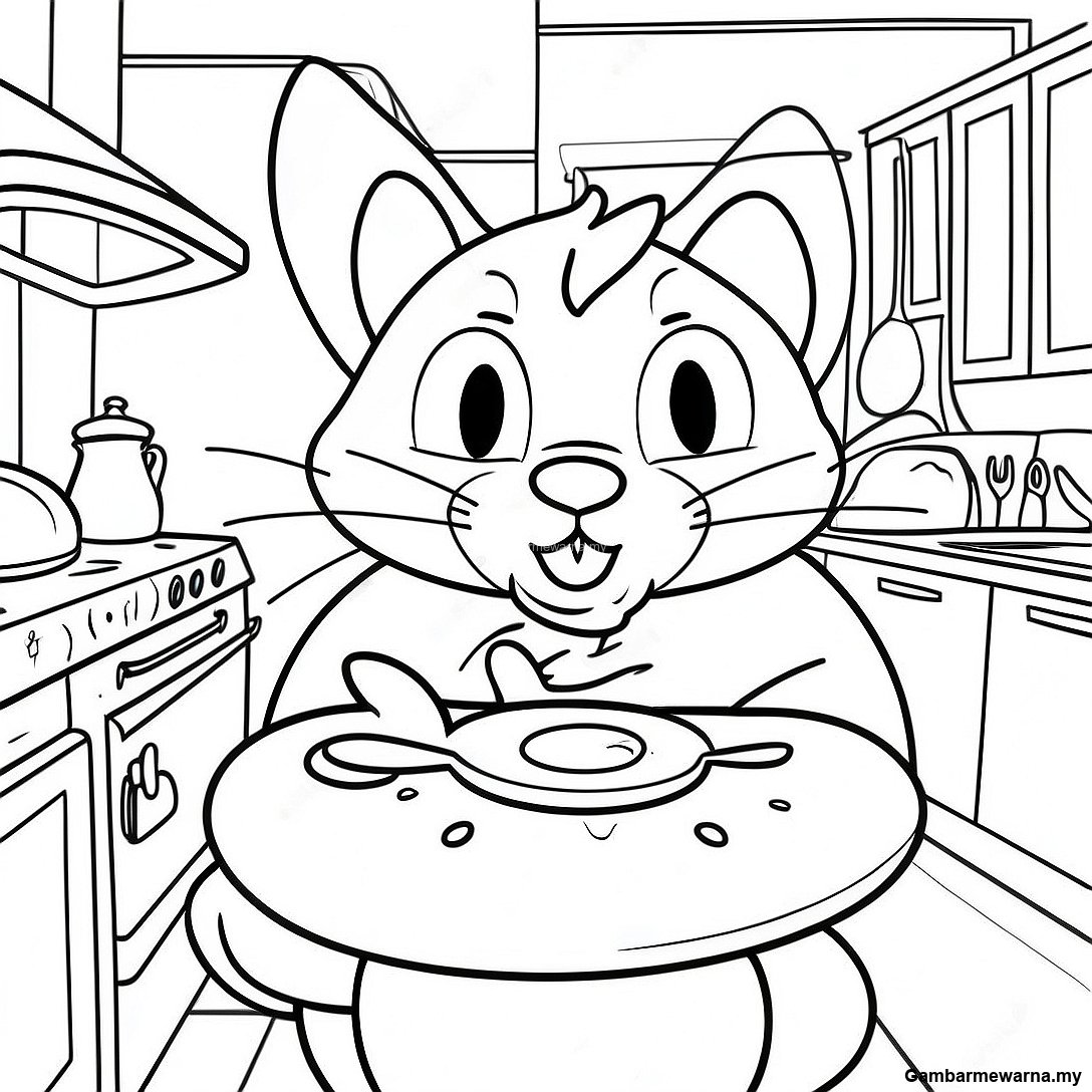 Halaman Mewarna Tom Dan Jerry Pemandangan Dapur Berwarna Warni