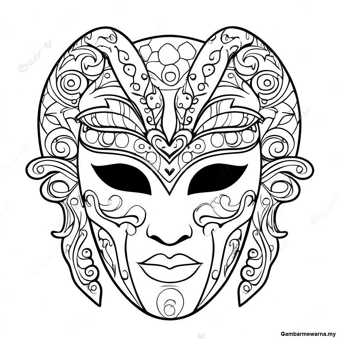 Muat turun PDF Boleh Cetak Halaman Mewarna Topeng Venetian Elegan