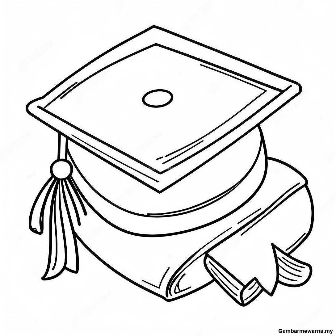 Muat turun PDF Boleh Cetak Halaman Mewarna Topi Graduasi Tadika