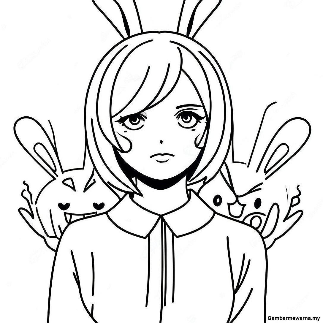 Halaman Mewarna Touka Kirishima Dengan Topeng Arnab