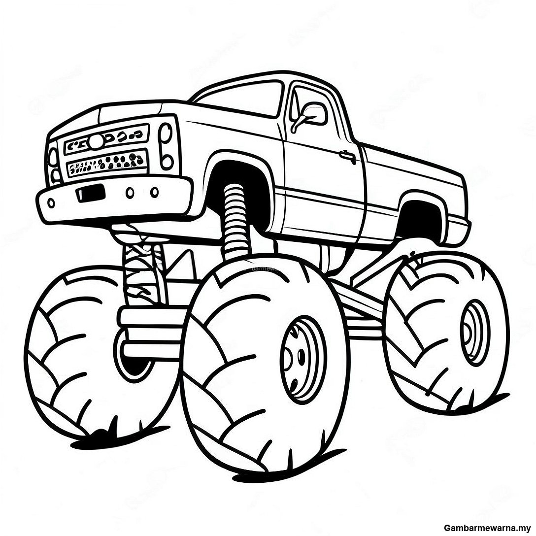 Muat turun PDF Boleh Cetak Halaman Mewarna Trak Monster Berwarna-Warni