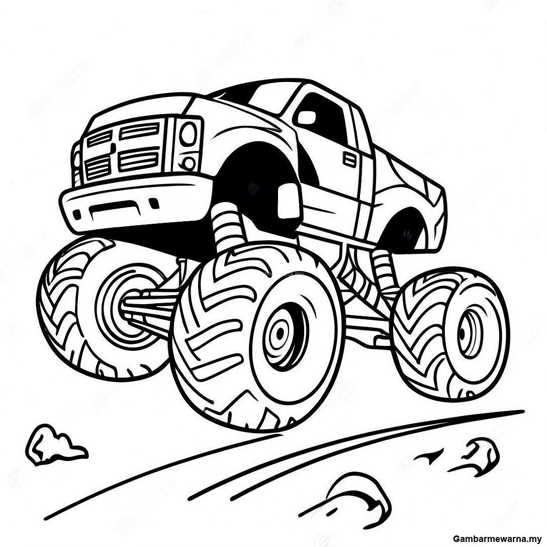 Halaman Mewarna Trak Monster Pantas Memecut Di Litar Tanah