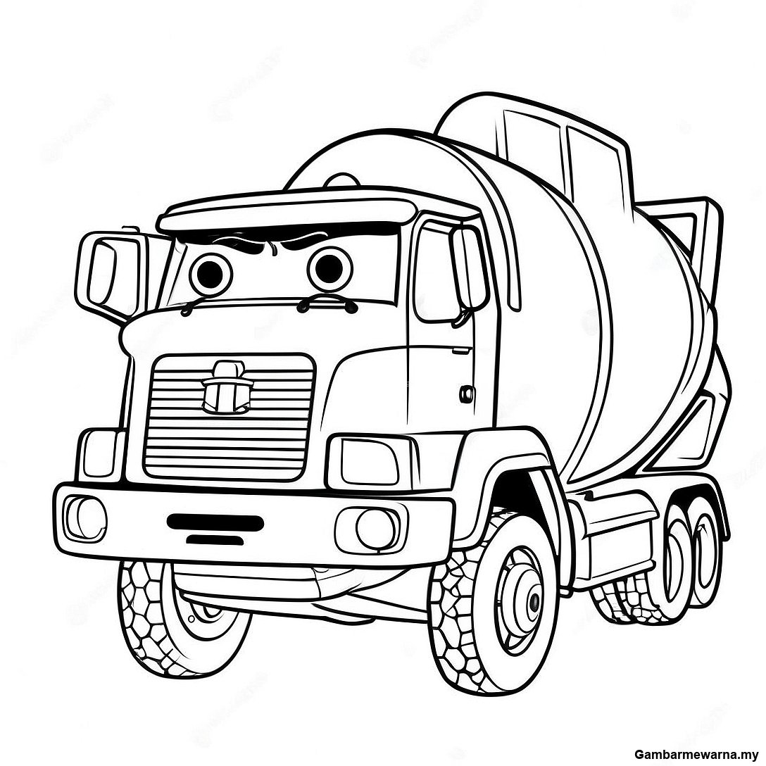 Halaman Mewarna Trak Pengadun Simen Dalam Aksi