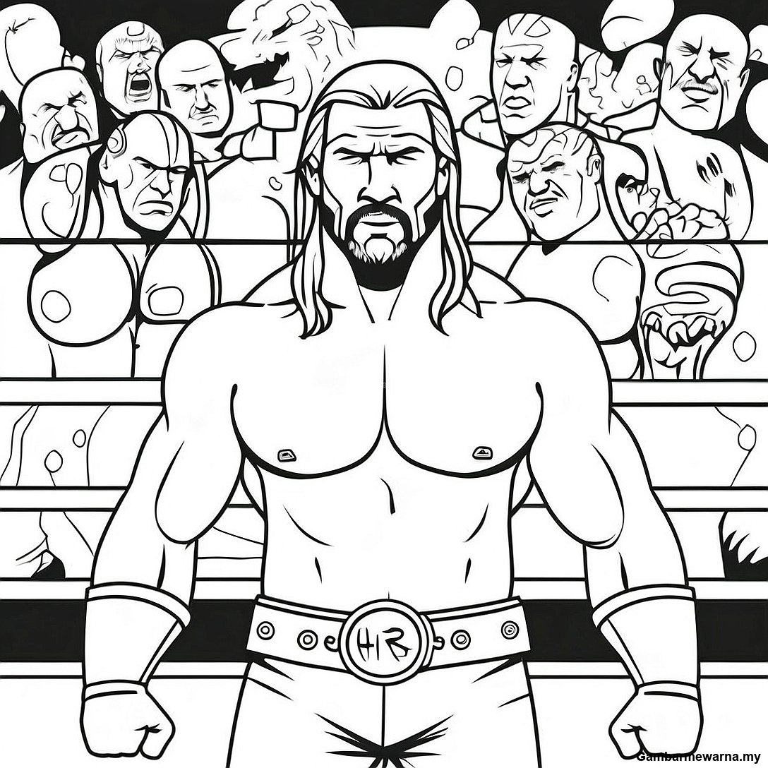 Muat turun PDF Boleh Cetak Halaman Mewarna Triple H Di Dalam Gelang