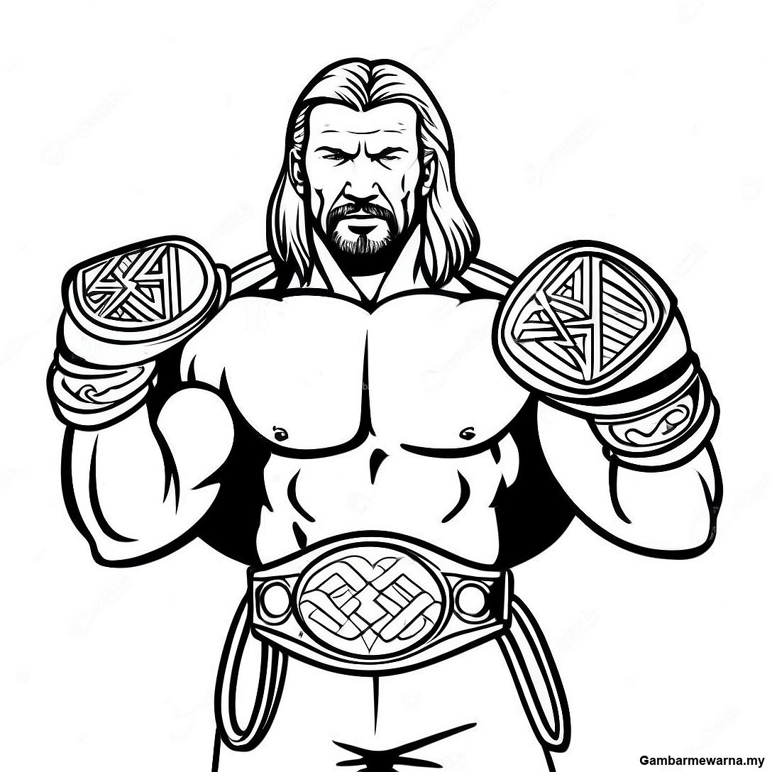 Halaman Mewarna Triple H Dinamik Memegang Dua Tali Pinggang 77759 20318