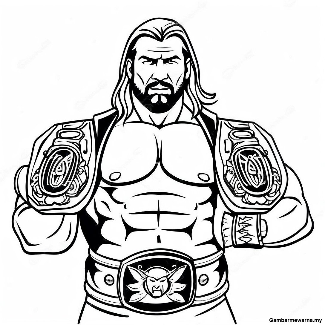Halaman Mewarna Triple H Memegang Dua Gelang 107334 44523