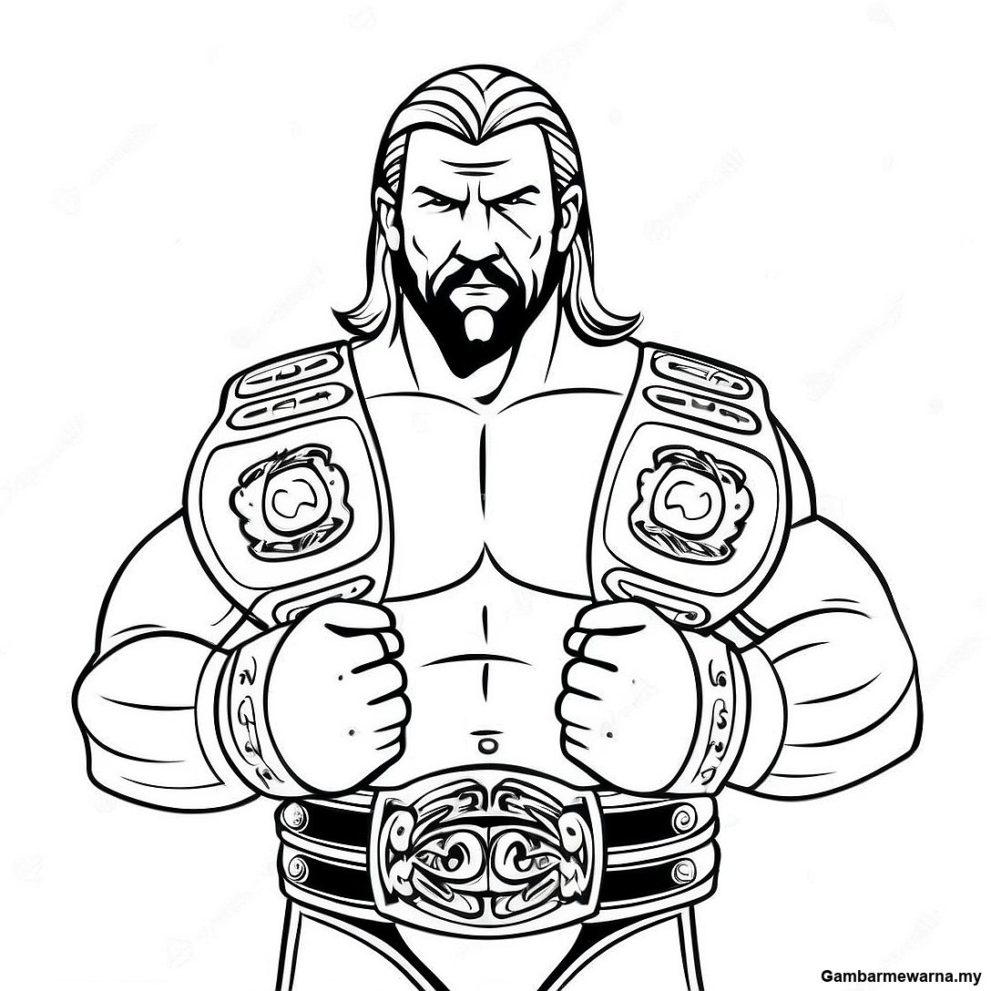 Halaman Mewarna Triple H Memegang Dua Gelang
