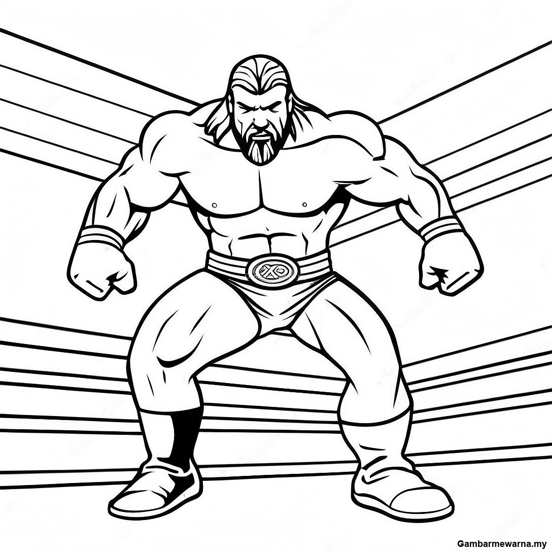 Muat turun PDF Boleh Cetak Halaman Mewarna Triple H Yang Penuh Aksi Di Dalam Gelang