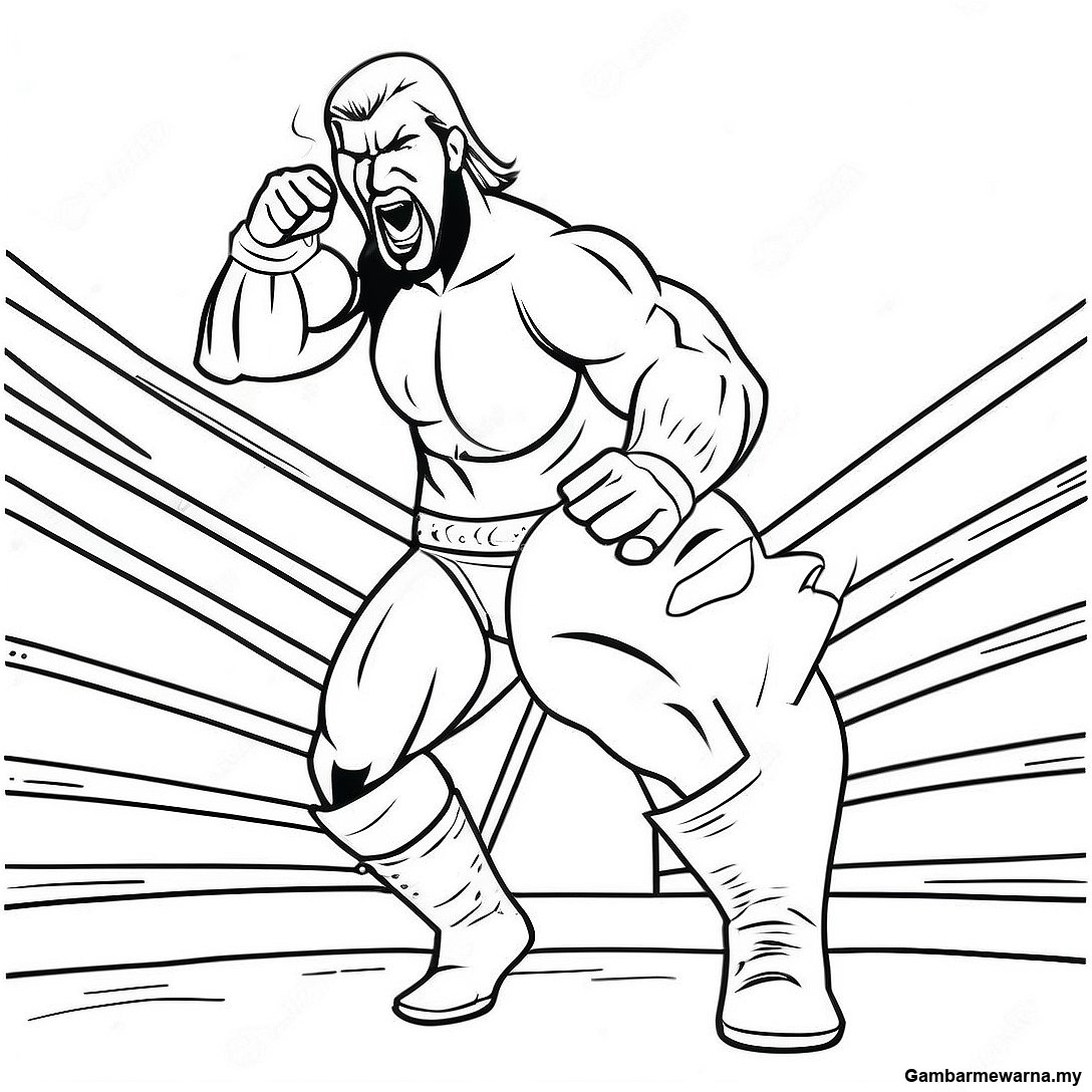 Halaman Mewarna Triple H Yang Penuh Aksi Di Dalam Gelang