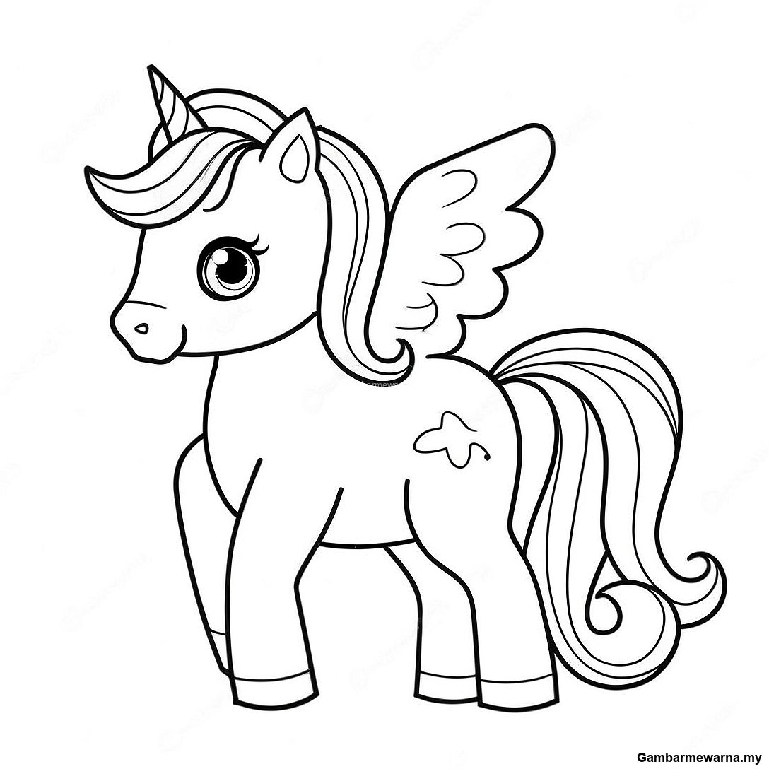 Halaman Mewarna Unicorn Comel Yang Menawan
