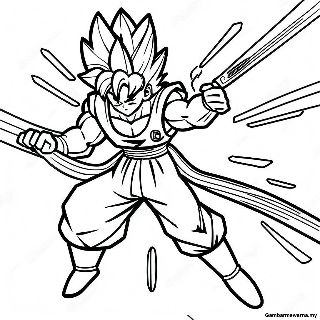 Halaman Mewarna Vegito Dengan Pedang Gabungan