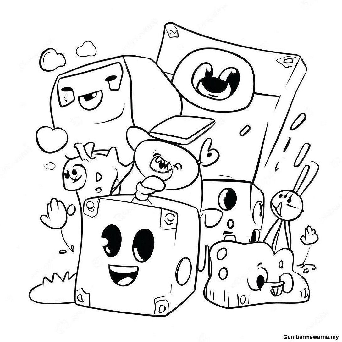 Halaman Mewarna Wubbox Dikelilingi Rakan-Rakan