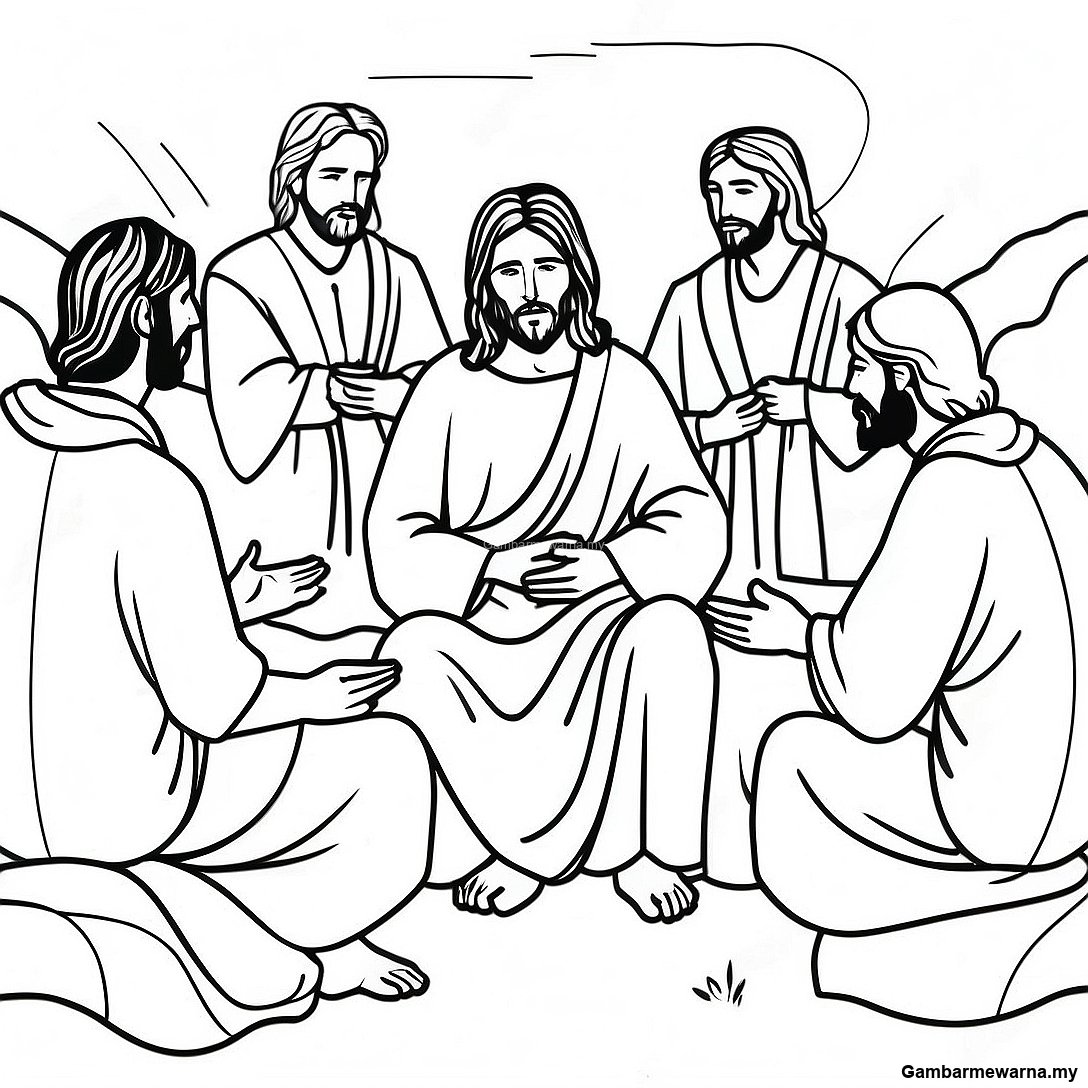 Halaman Mewarna Yesus Mengajar Murid Murid
