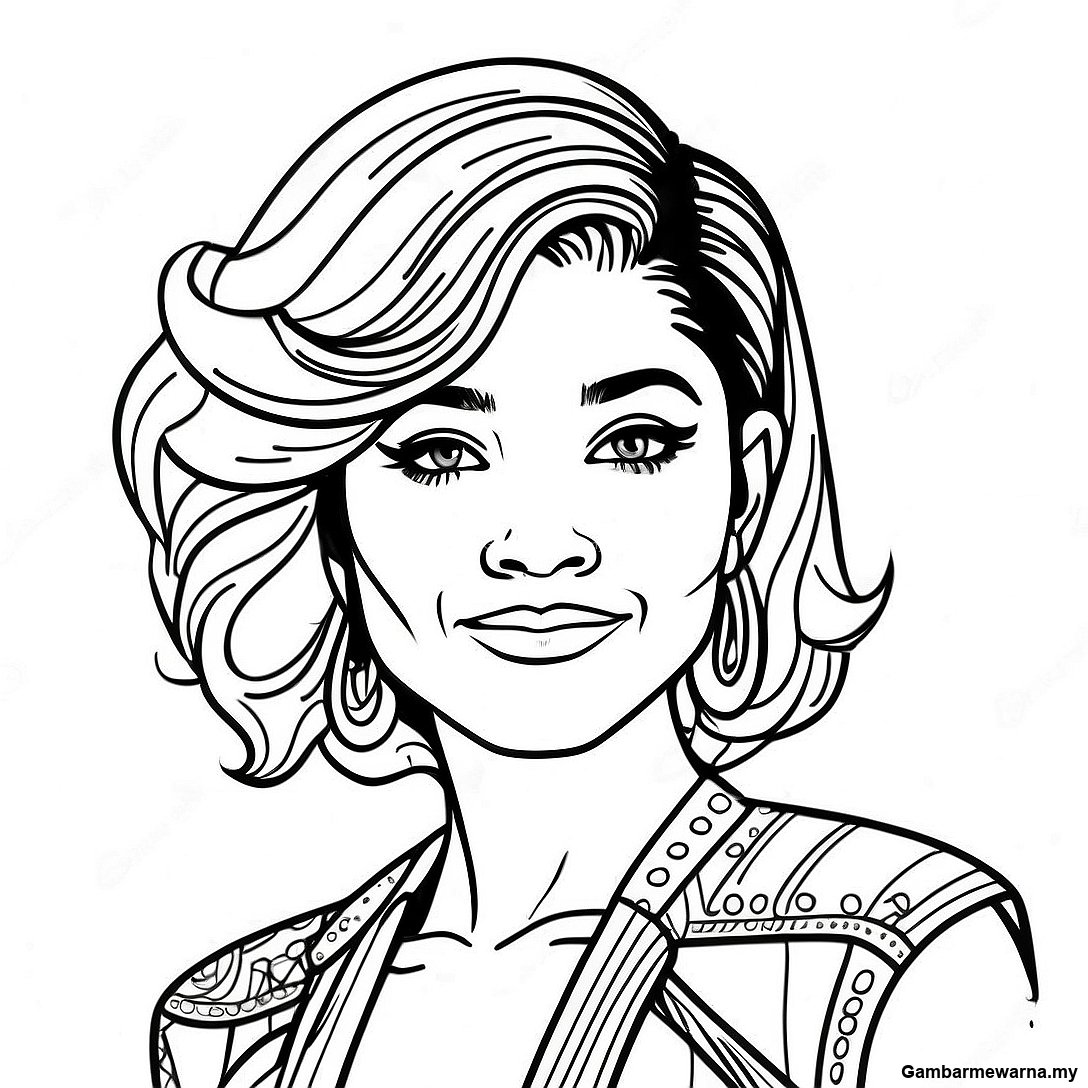 Halaman Mewarna Zendaya Dengan Rambut Bergaya 130767 63661