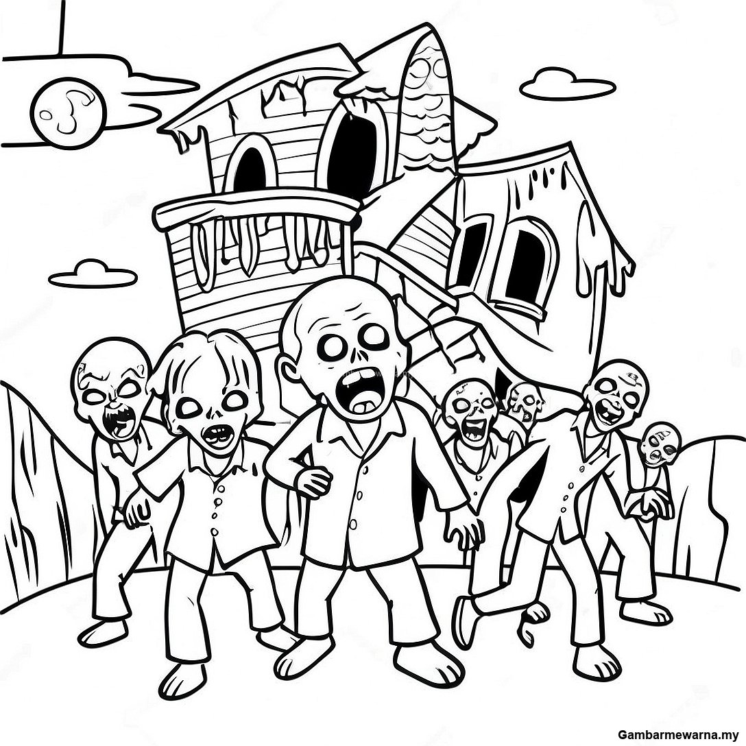 Halaman Mewarna Zombies Di Rumah Berhantu 95109 34353