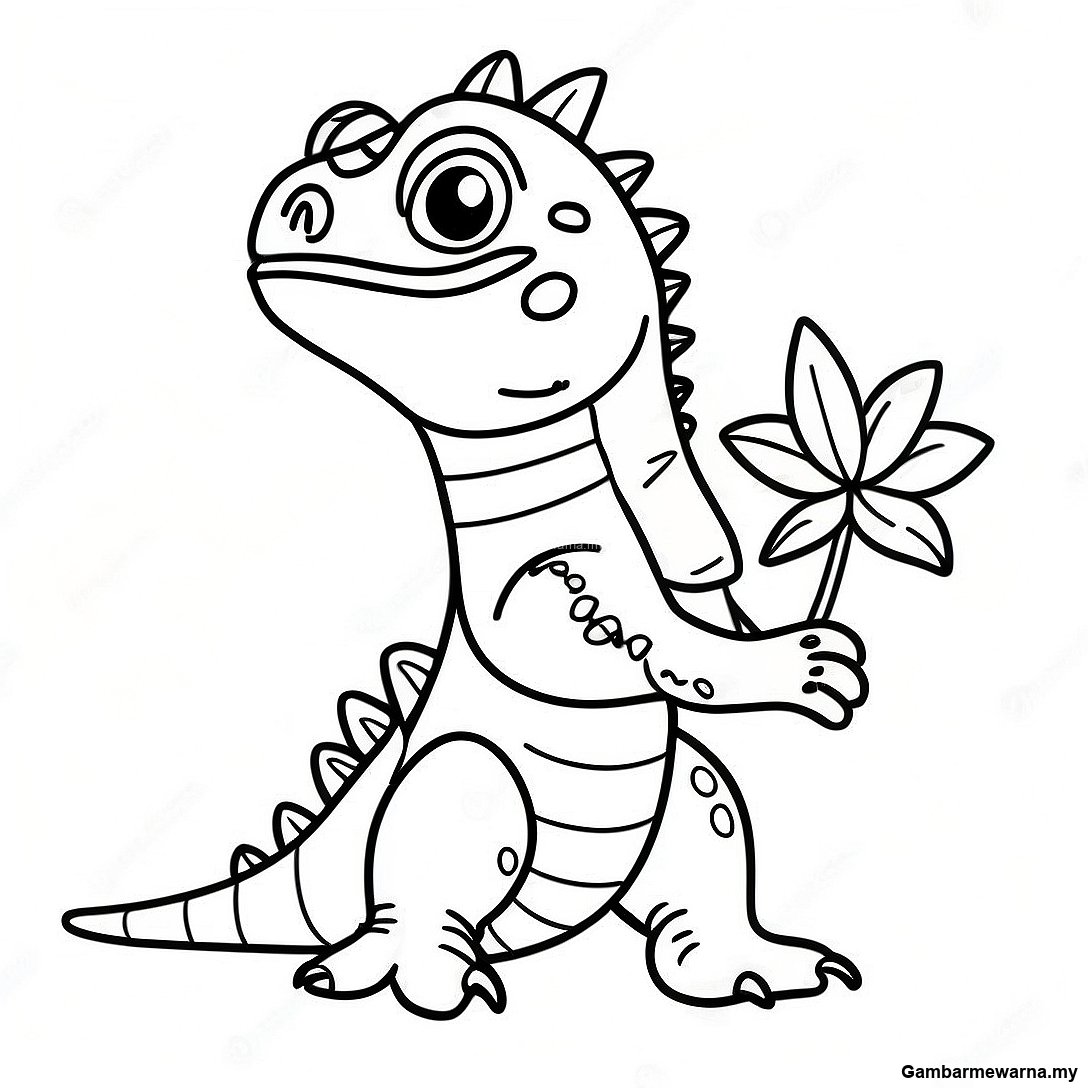 Iguana Gembira Dengan Bunga Halaman Mewarna
