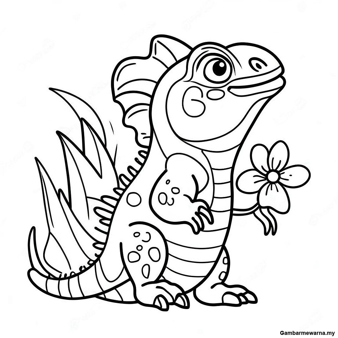 Iguana Gembira Dengan Bunga Halaman Mewarna 63700 14134