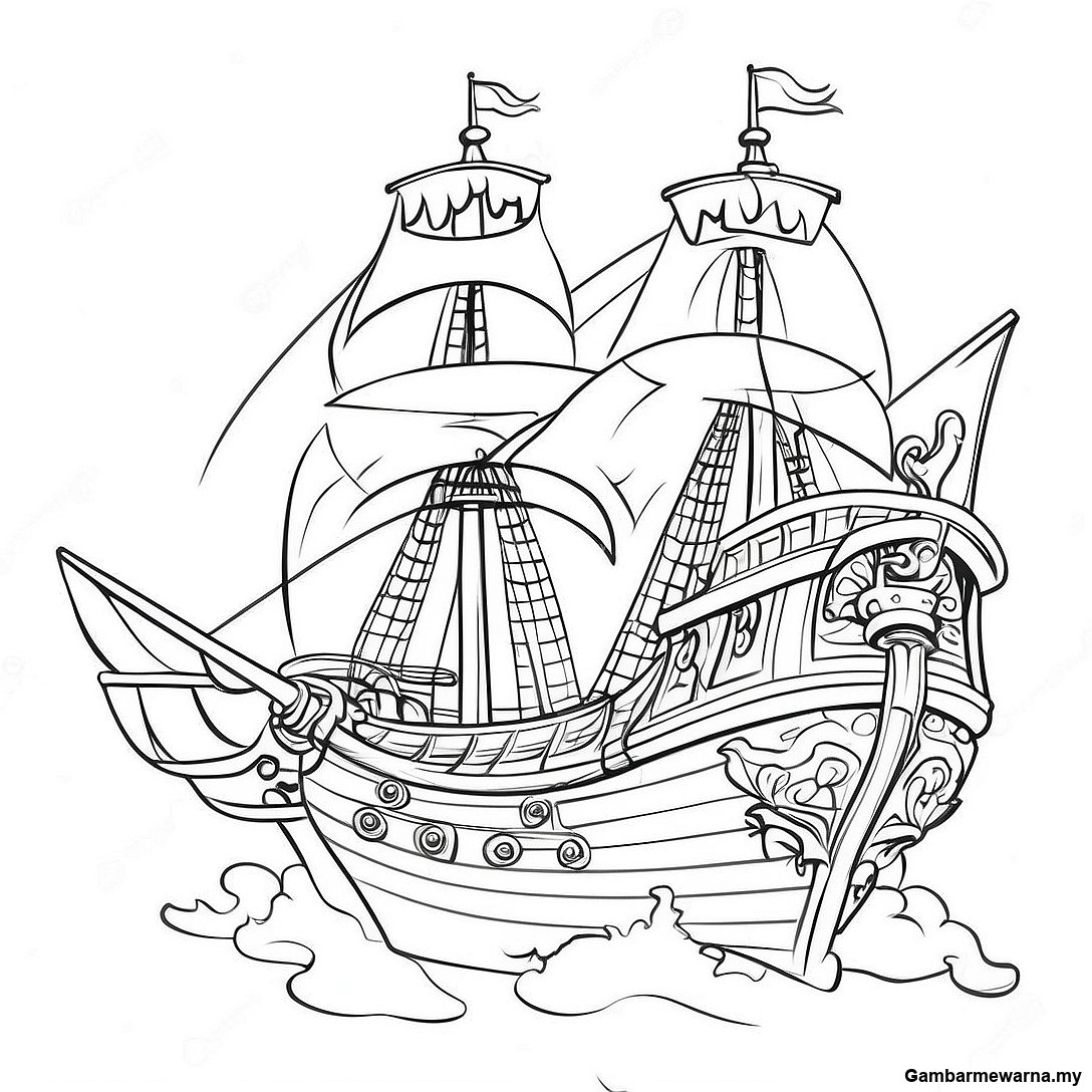 Kapal Lanun Megah Dengan Meriam Halaman Mewarna
