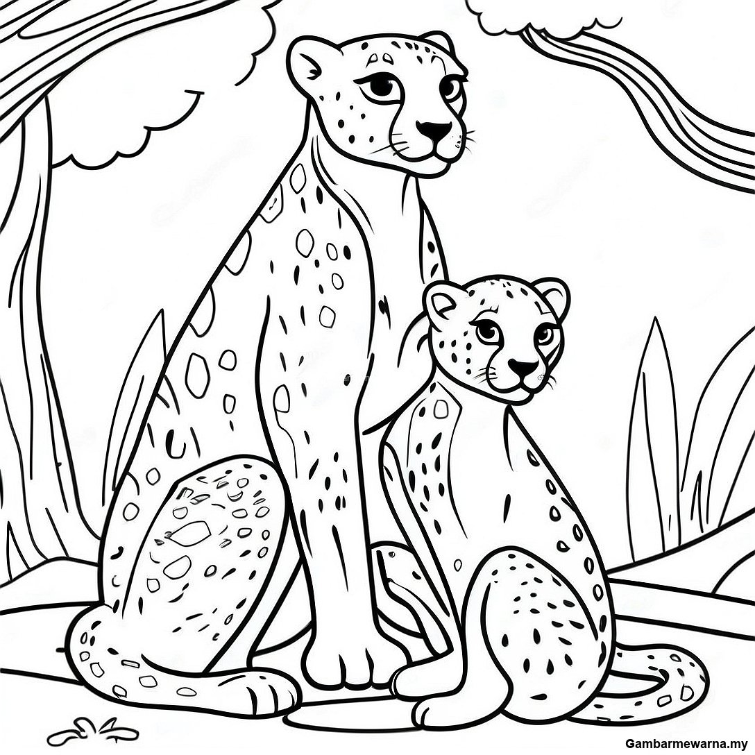Muat turun PDF Boleh Cetak Keluarga Cheetah Bermain Halaman Mewarna