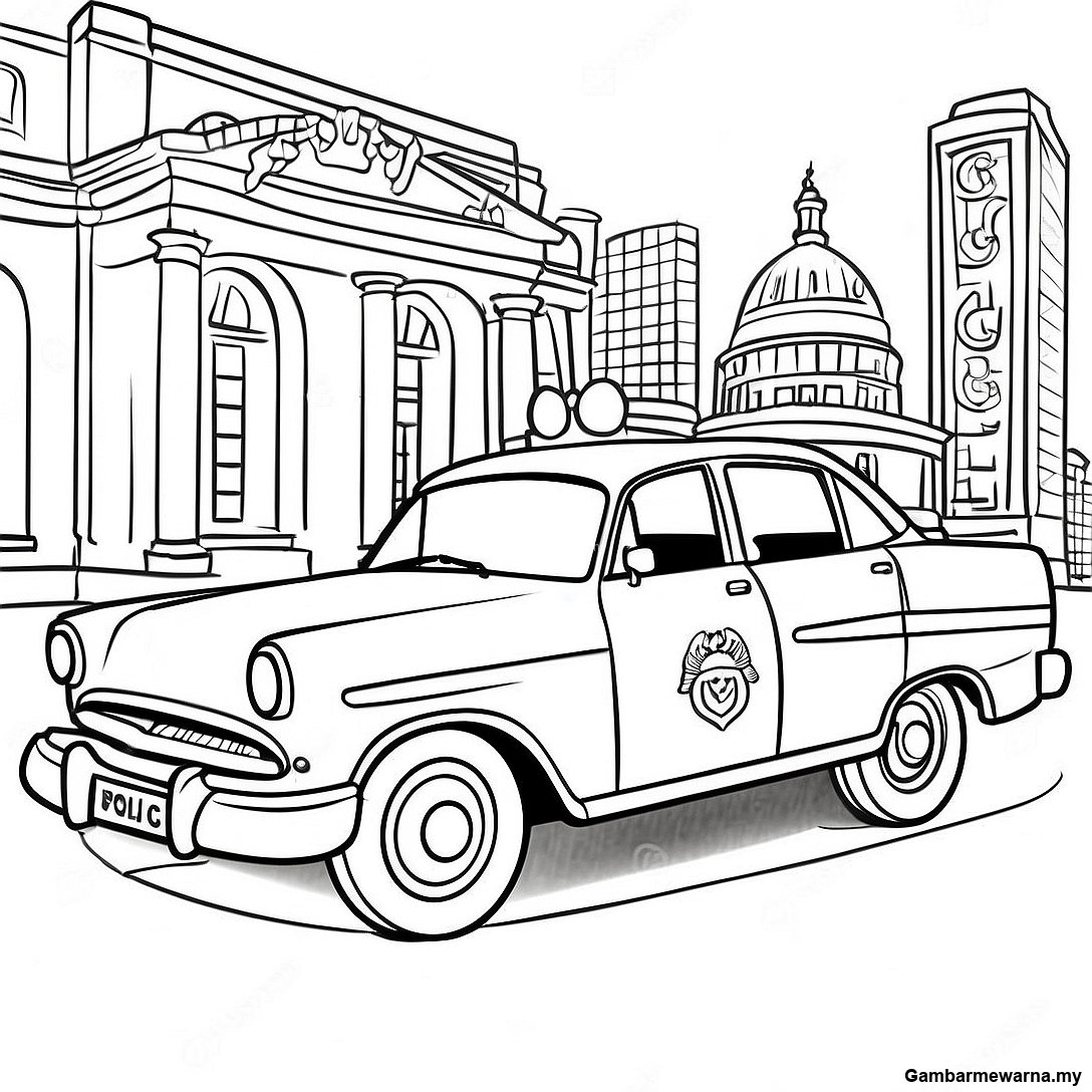 Muat turun PDF Boleh Cetak Kereta Polis Vintaj Gambar Mewarna