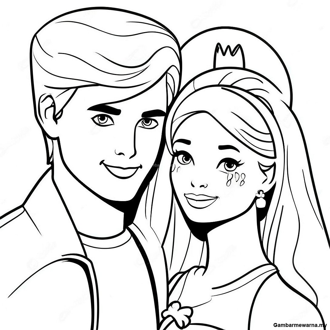 Muat turun PDF Boleh Cetak Laman Mewarna Barbie Dan Ken