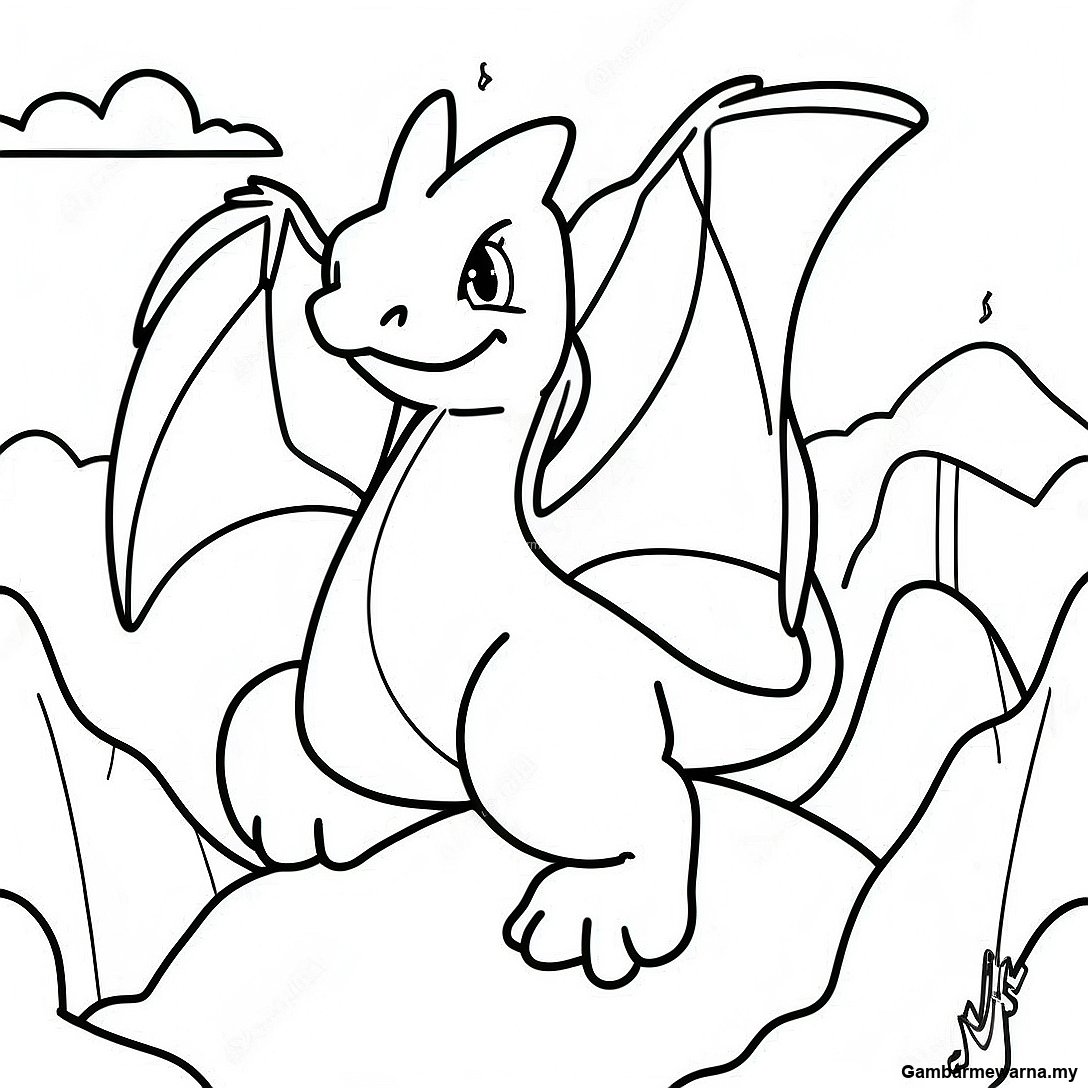 Laman Mewarna Charizard Terbang Di Atas Gunung