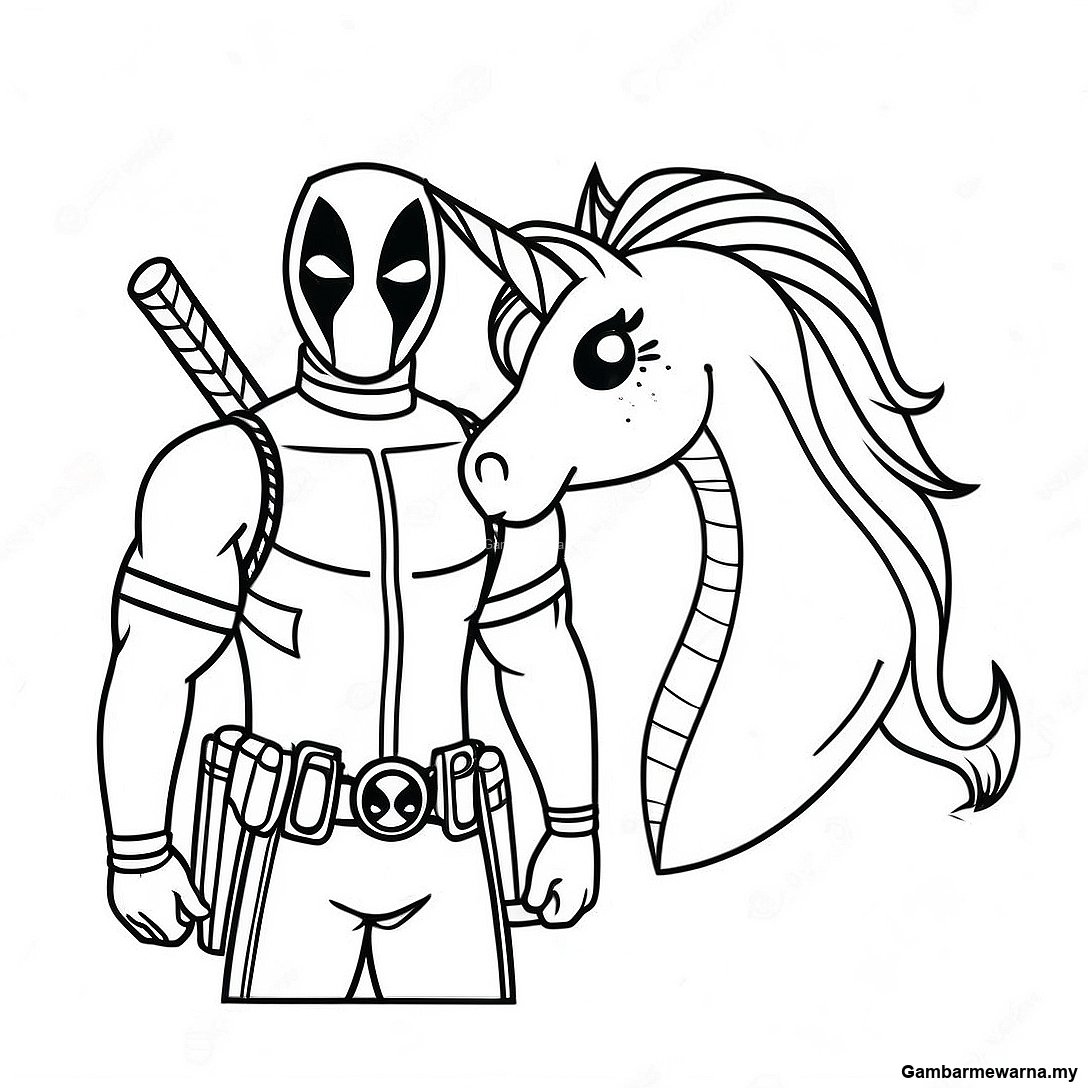 Laman Mewarna Deadpool Dengan Unicorn 30560 6669