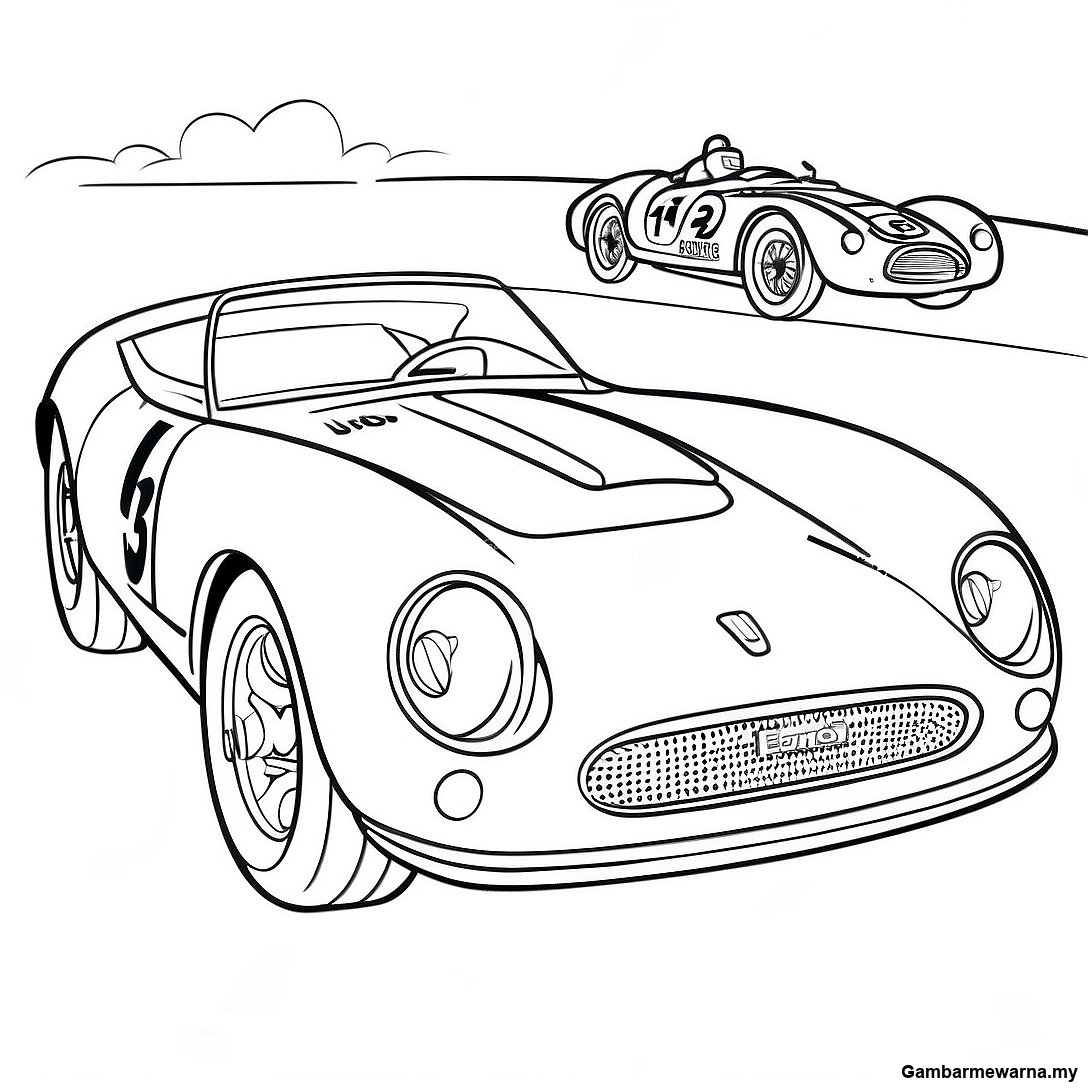 Laman Mewarna Kereta Lumba Ferrari Klasik