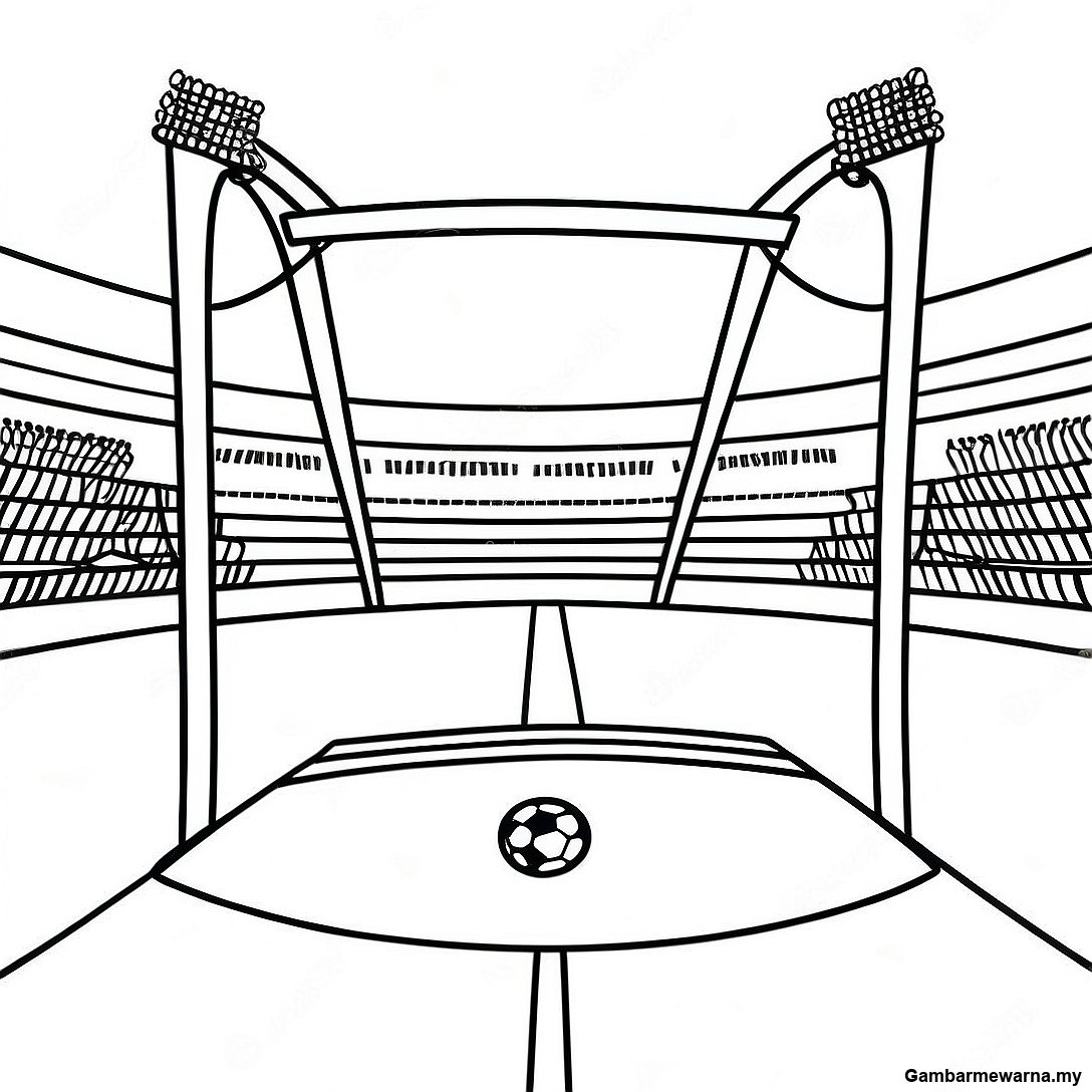 Laman Mewarna Padang Bola Sepak Dengan Tiang Gol
