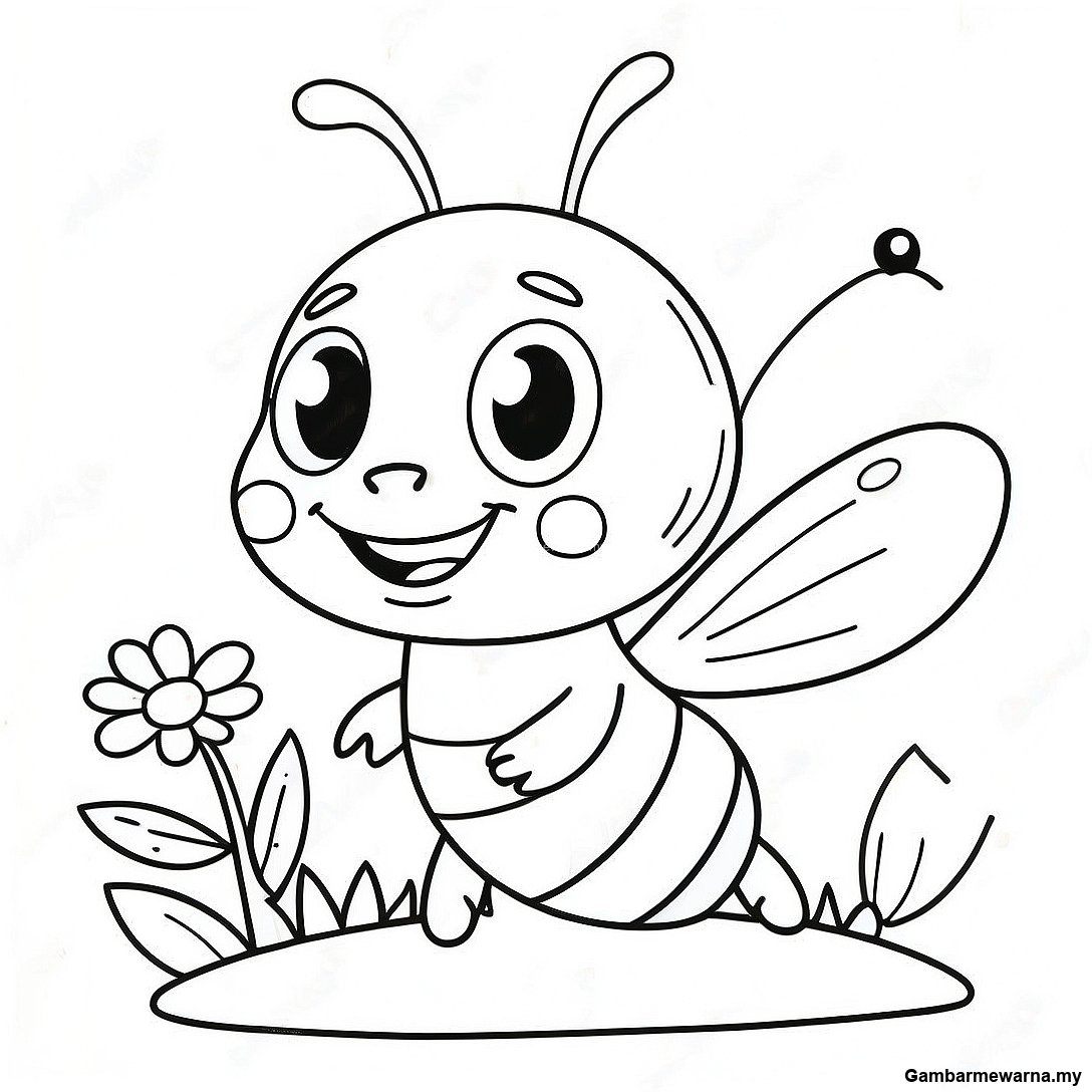 Lebah Gembira Dengan Bunga Halaman Mewarna
