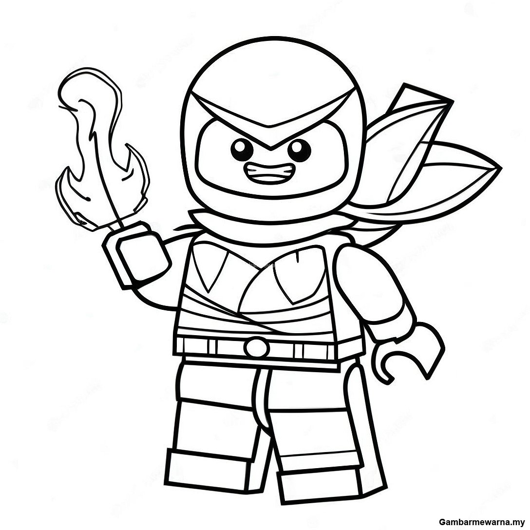 Kai Ninjago dengan Elemen Api Halaman Mewarna