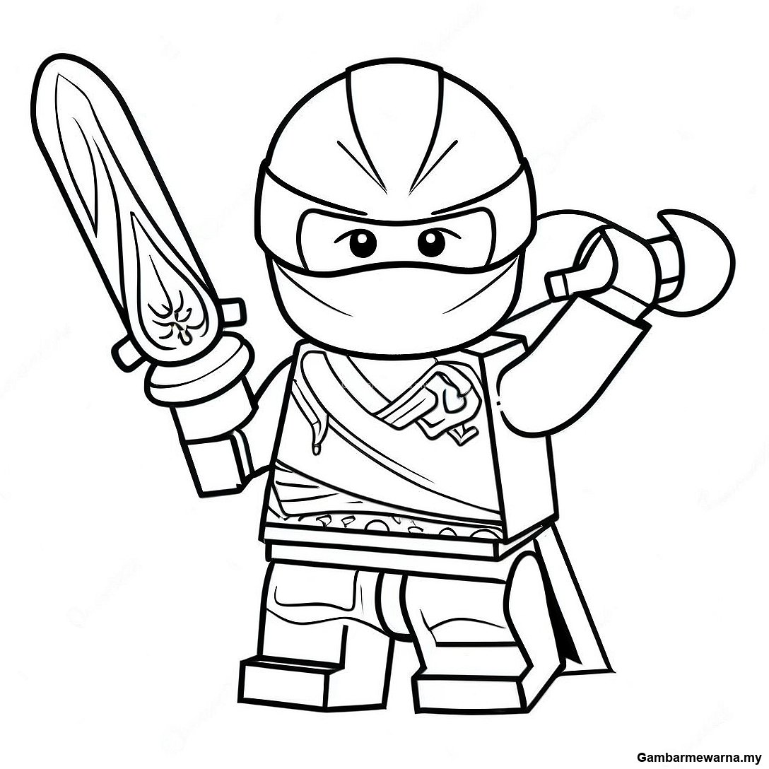 Halaman Mewarna Kai Ninjago dengan Pedang