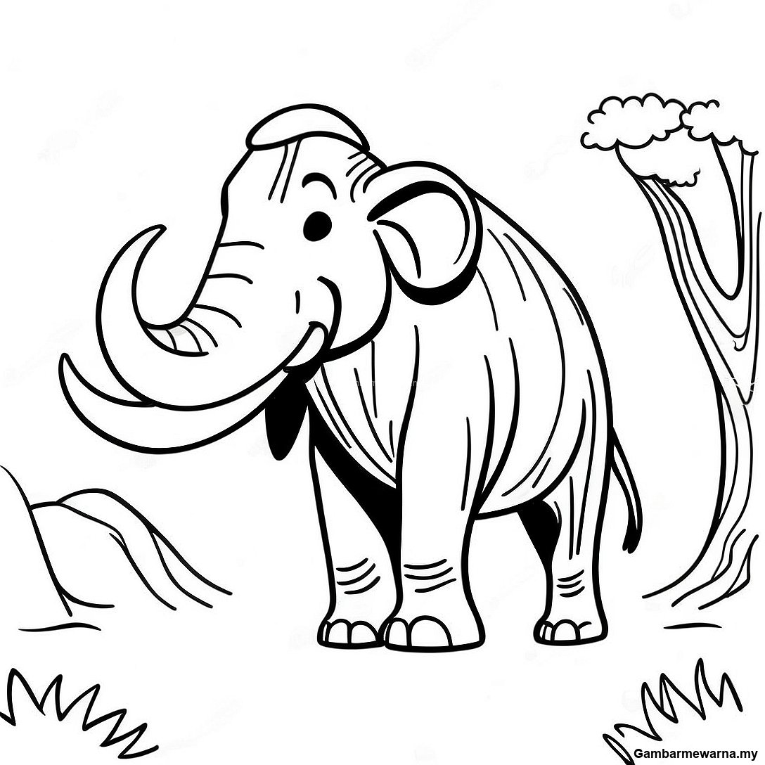 Muat turun PDF Boleh Cetak Mammoth Prasejarah Halaman Mewarna