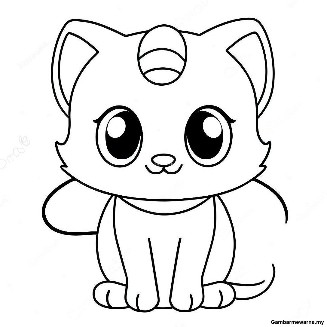 Mew Comel Dengan Mata Berkilau Halaman Mewarna
