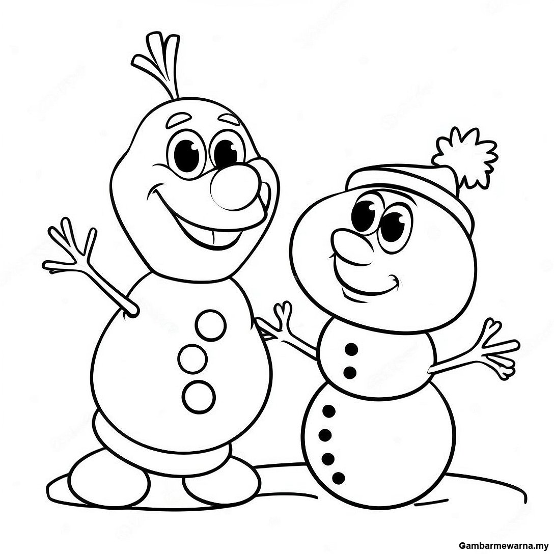 Olaf Comel Dengan Manusia Salji Halaman Mewarna