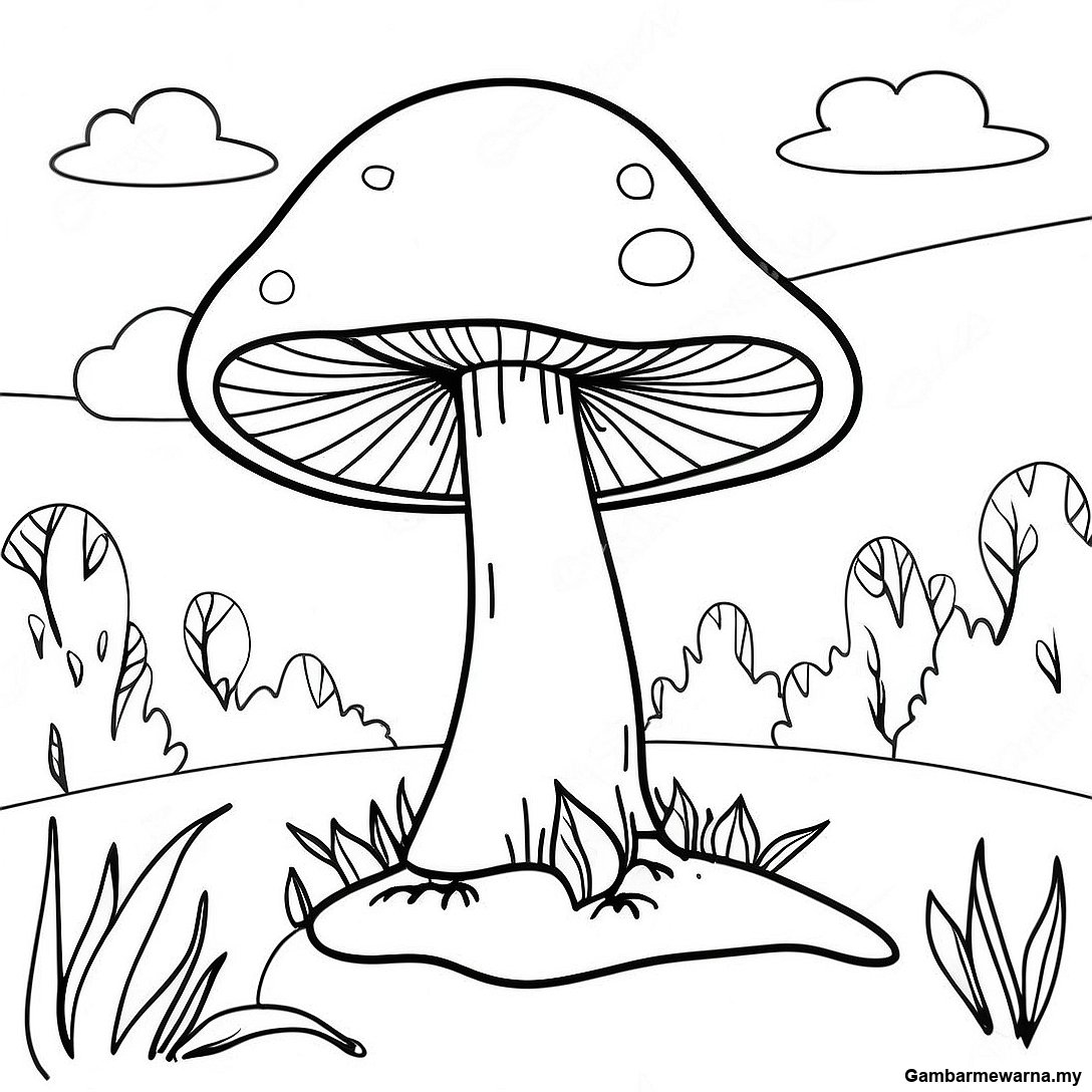 Pemandangan Cendawan Raksasa Gambar Mewarna