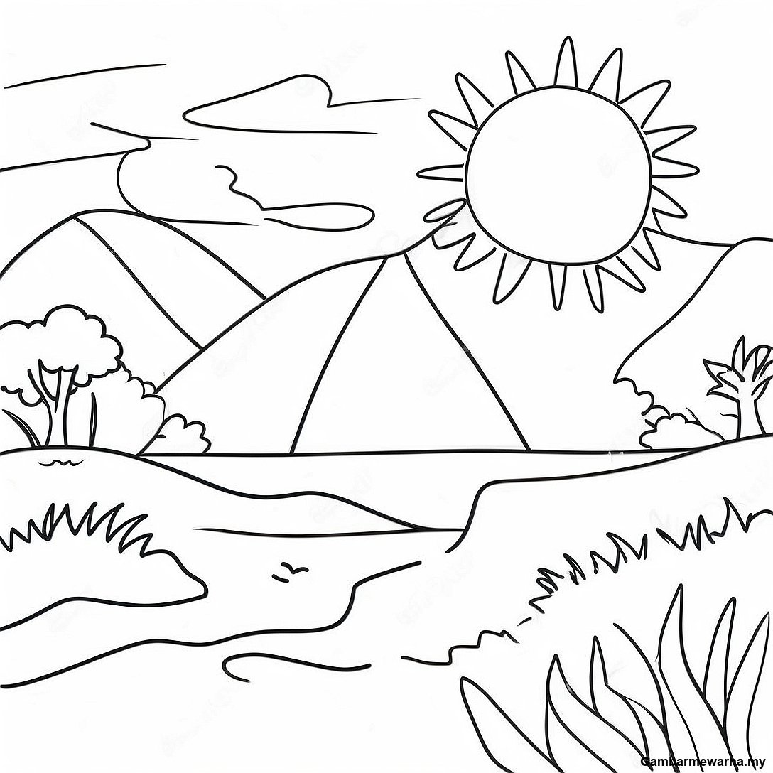 Pemandangan Matahari Terbenam Berwarna Warni Halaman Mewarna 90066 30161