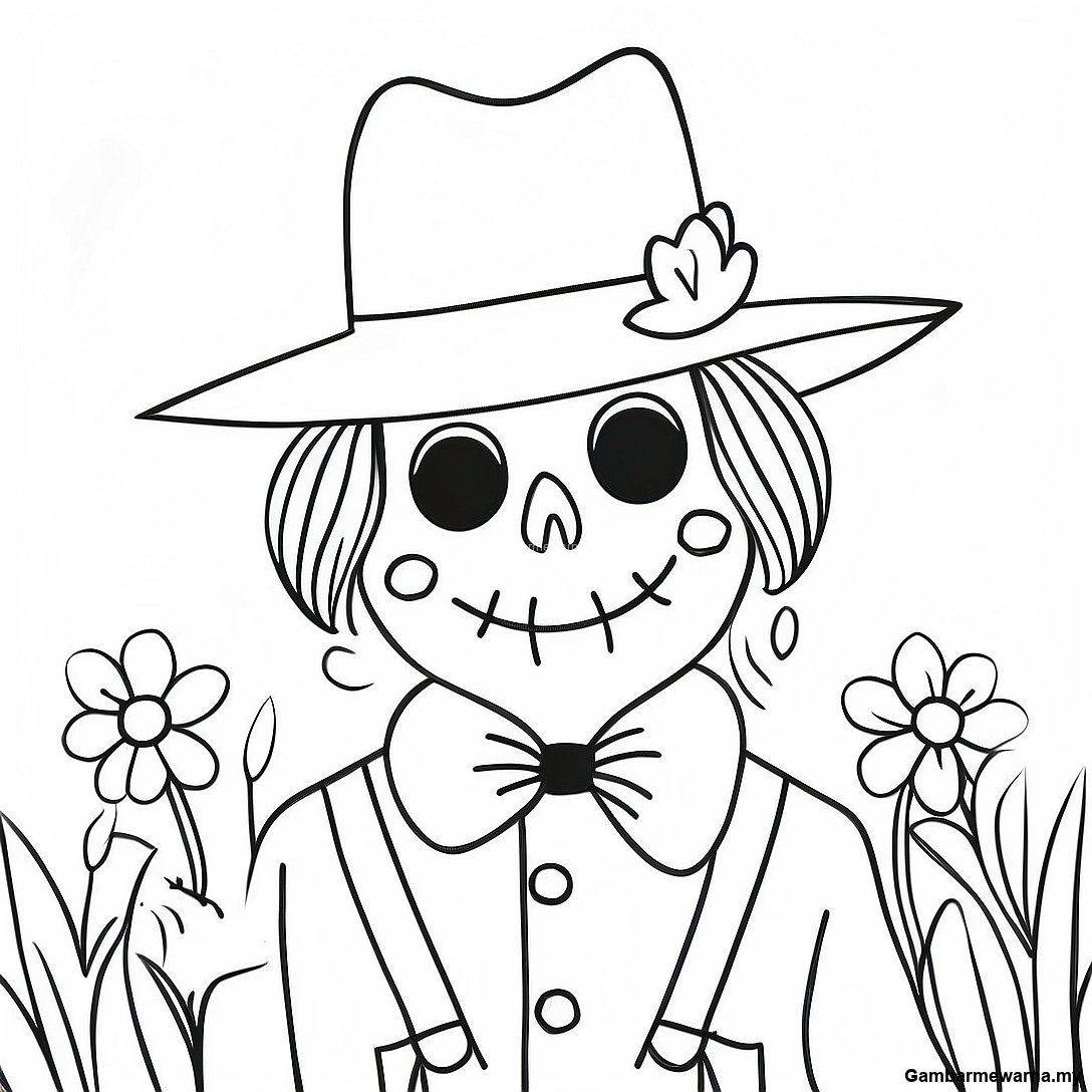Penyamun Dengan Topi Jerami Dan Bunga Halaman Mewarna