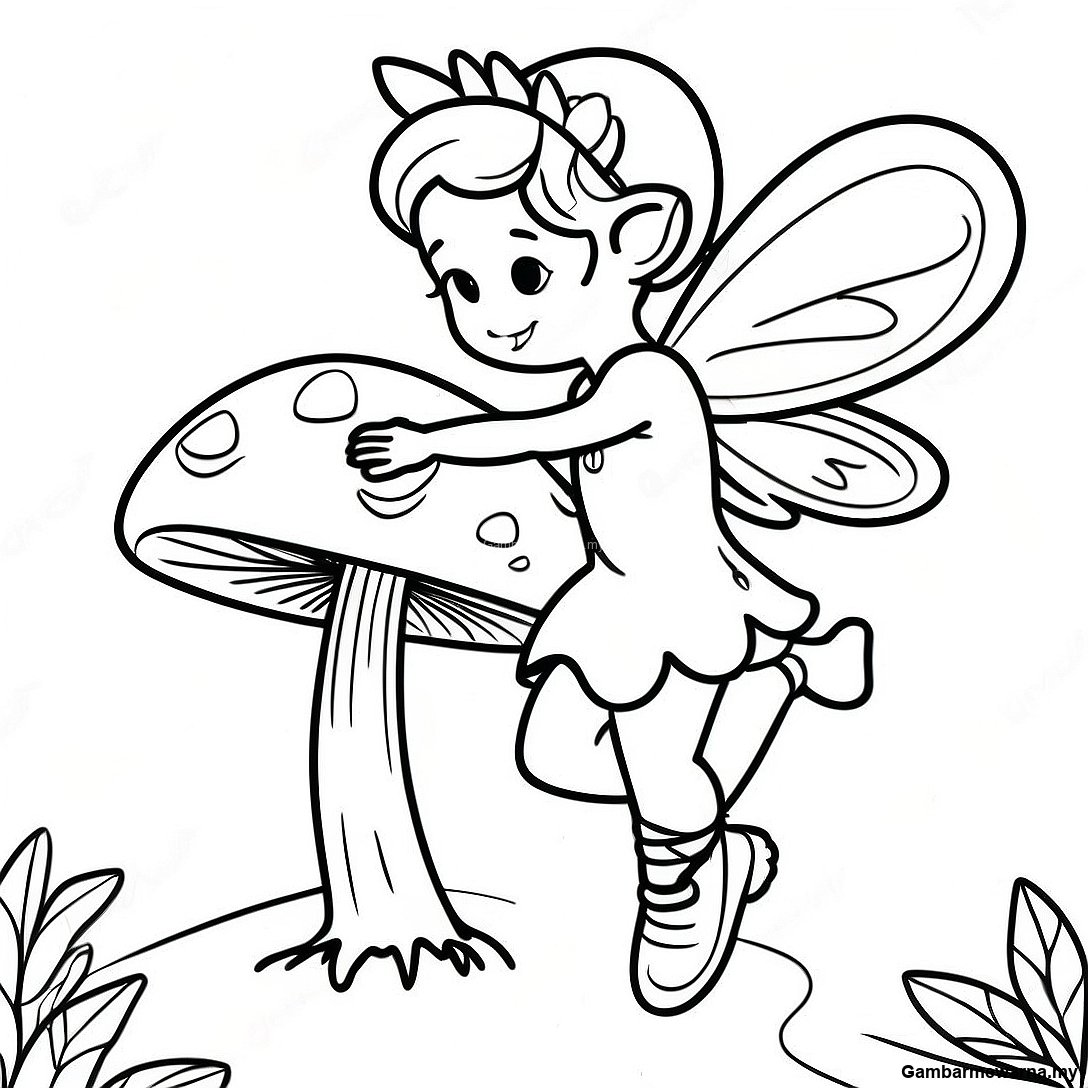 Peri Ceria Menari Di Atas Cendawan Gambar Mewarna