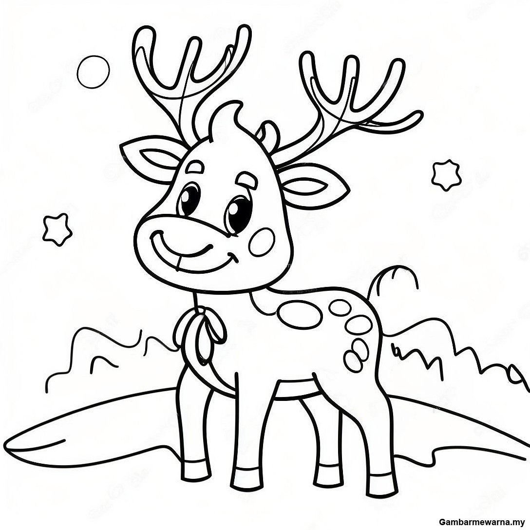 Rusa Gembira Dengan Lampu Krismas Halaman Mewarna