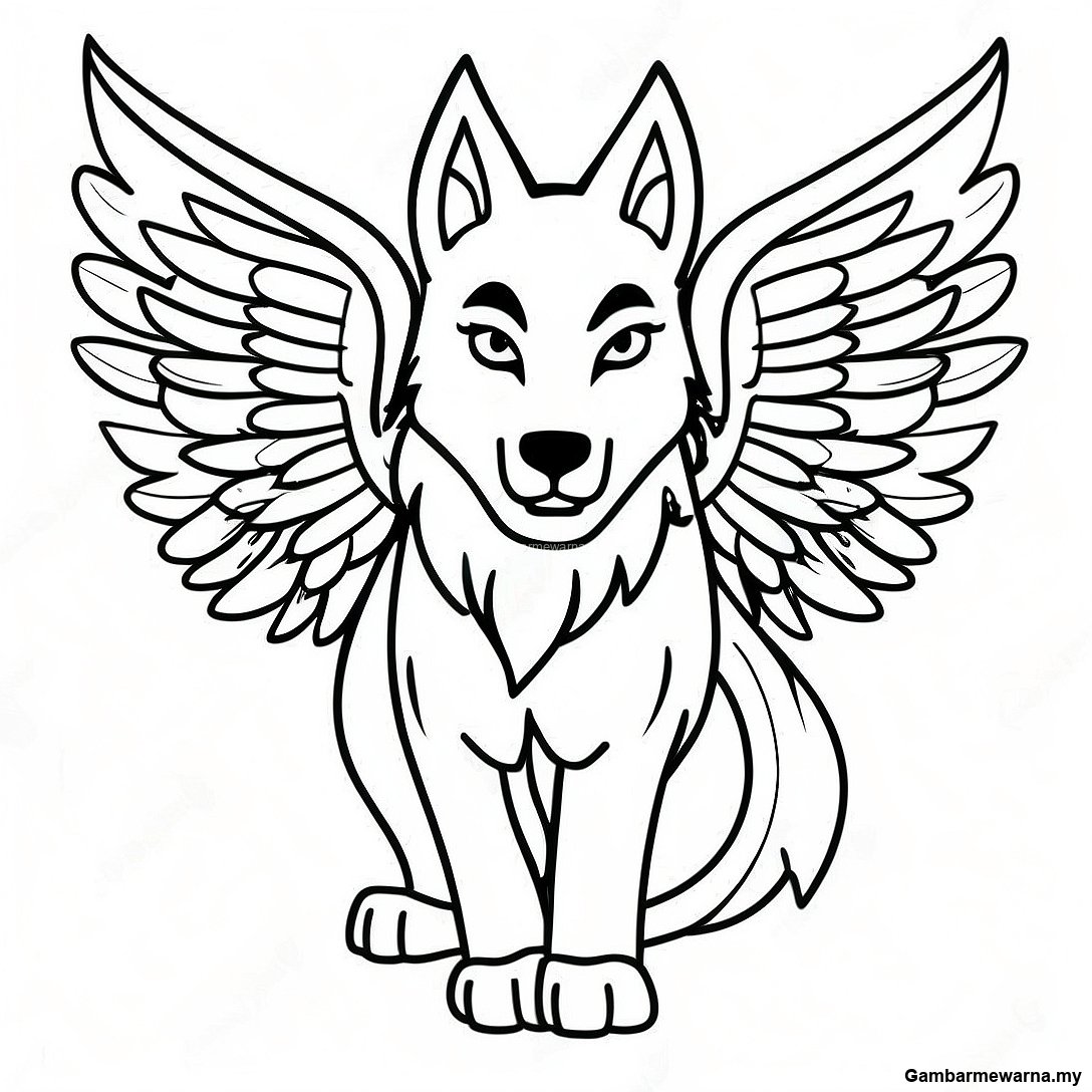 Muat turun PDF Boleh Cetak Serigala Dengan Sayap Halaman Mewarna
