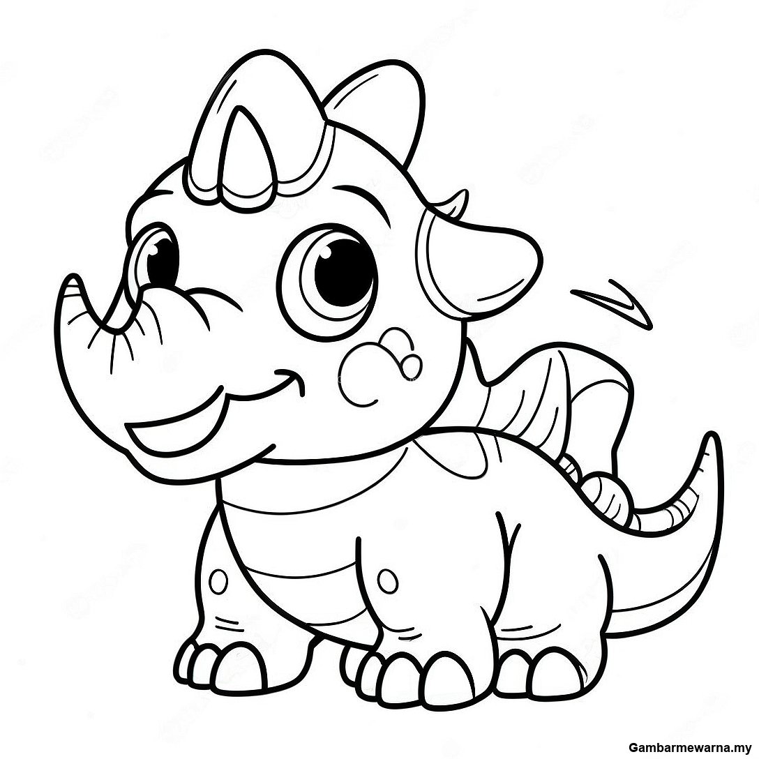 Muat turun PDF Boleh Cetak Triceratops Comel Halaman Mewarna