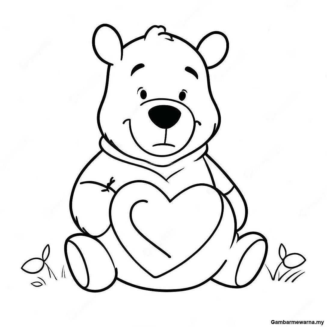 Winnie The Pooh Dengan Hati Besar Halaman Mewarna