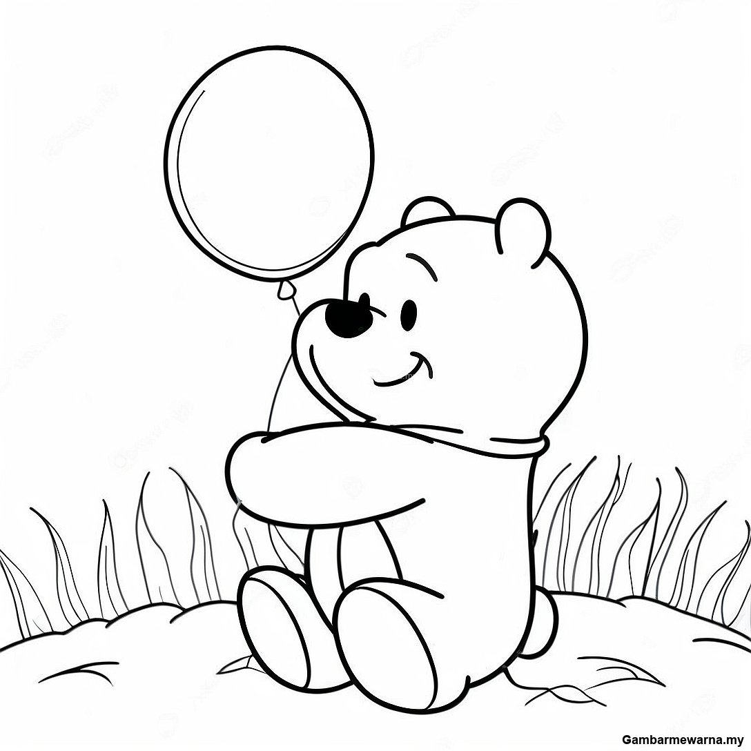 Winnie The Pooh Memegang Belon Halaman Mewarna