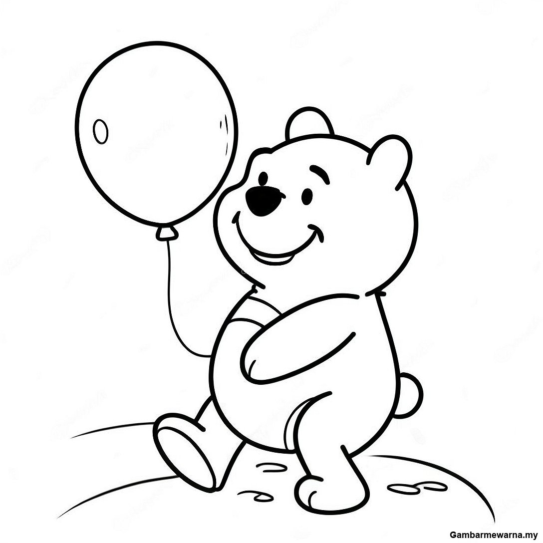 Winnie The Pooh Memegang Belon Halaman Mewarna