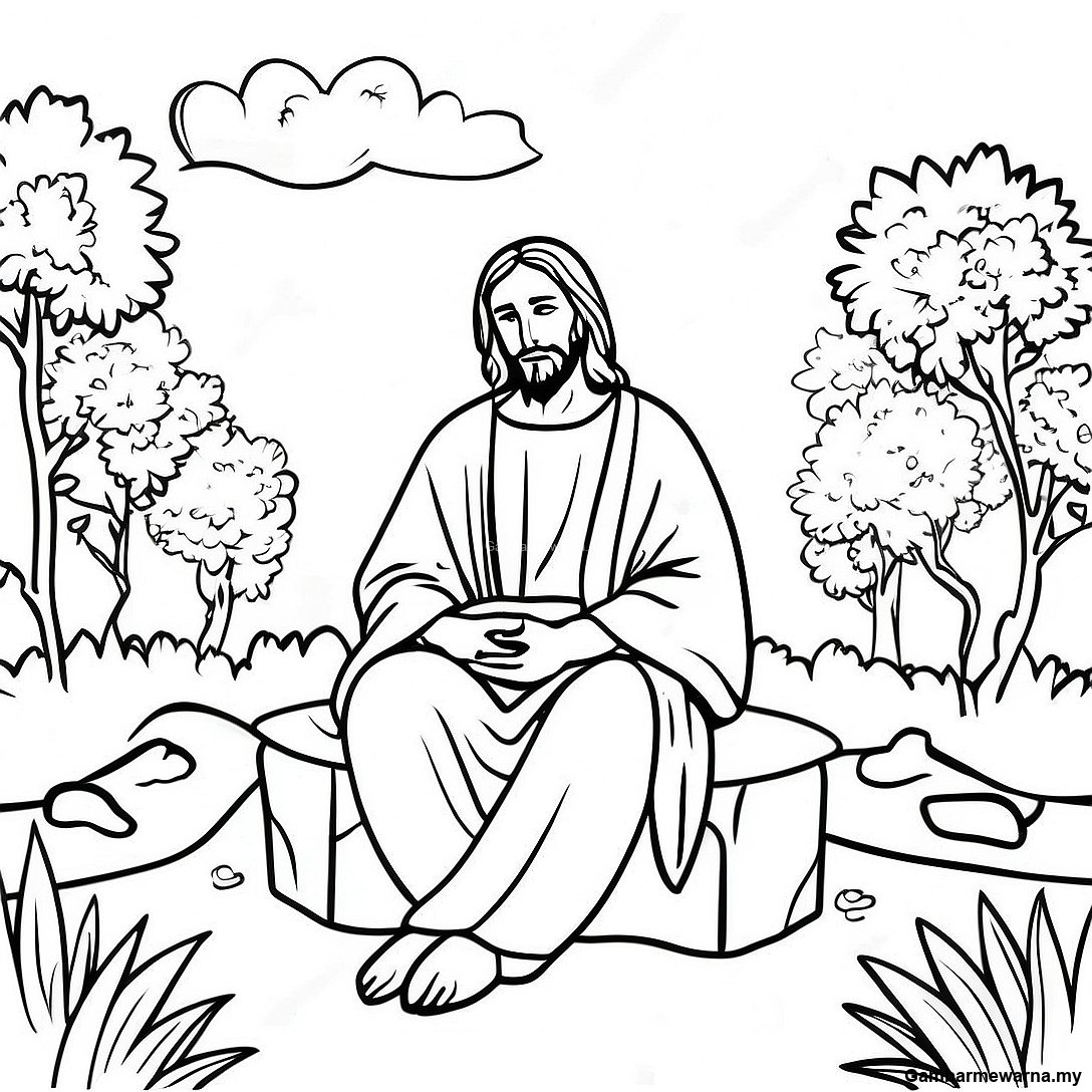 Yesus Di Taman Damai Halaman Mewarna 89964 30088